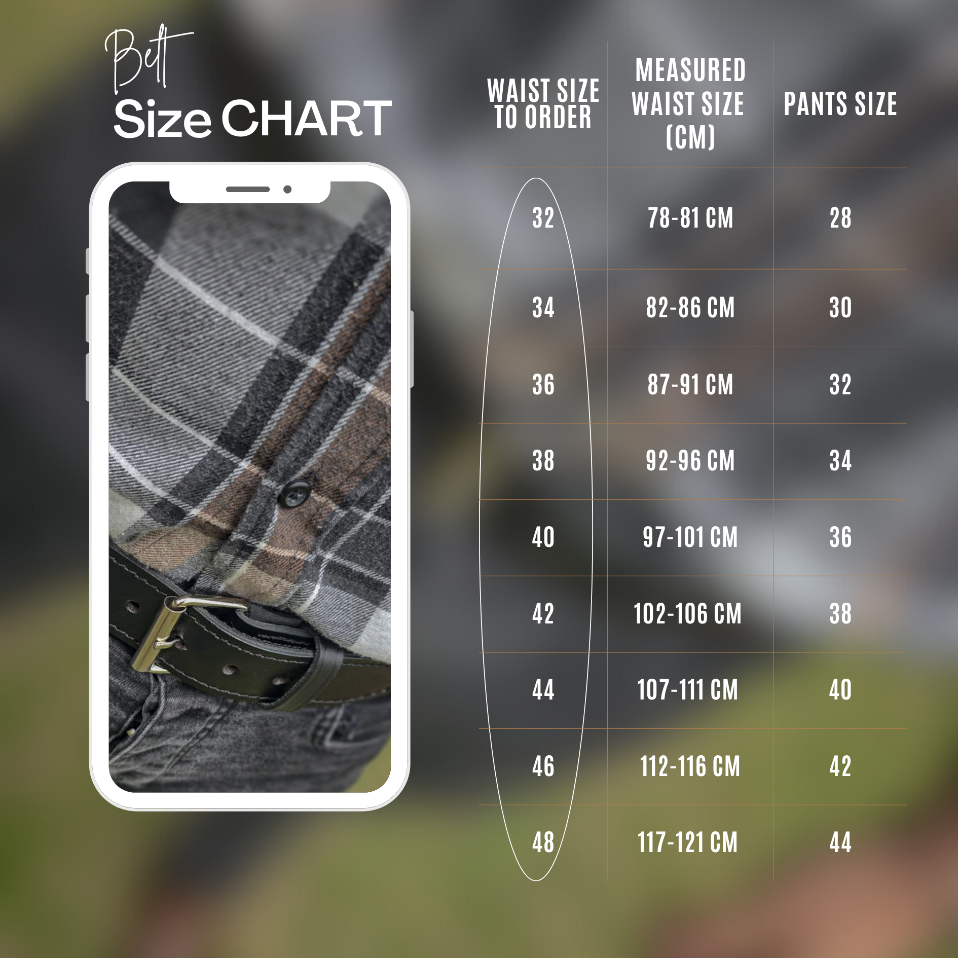 To ensure a perfect fit, please follow these steps to determine your waist size. We only need your measured waist size to craft the perfect fitting belt for you.
